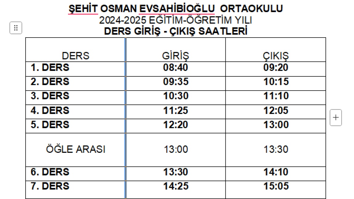 Okul Zaman Tablomuz Değişmiştir.2024-2025 Eğitim Öğretim Yılı 2. Dönem Okul Zaman Tablosu...